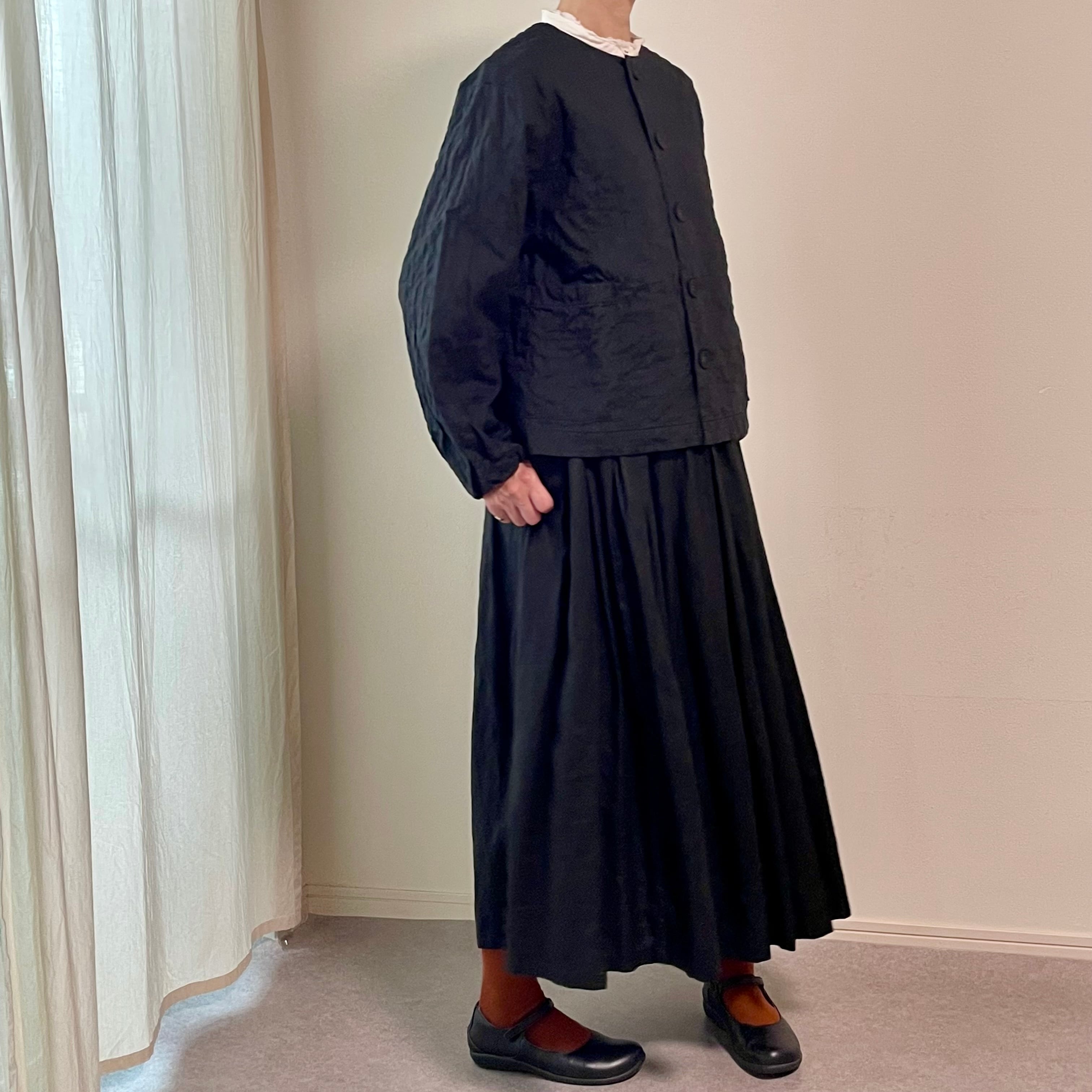 初秋からのちょうど良いハーフコートはオリジナルのラミーリネンキルトがコーディネートをグッとこなれた印象に