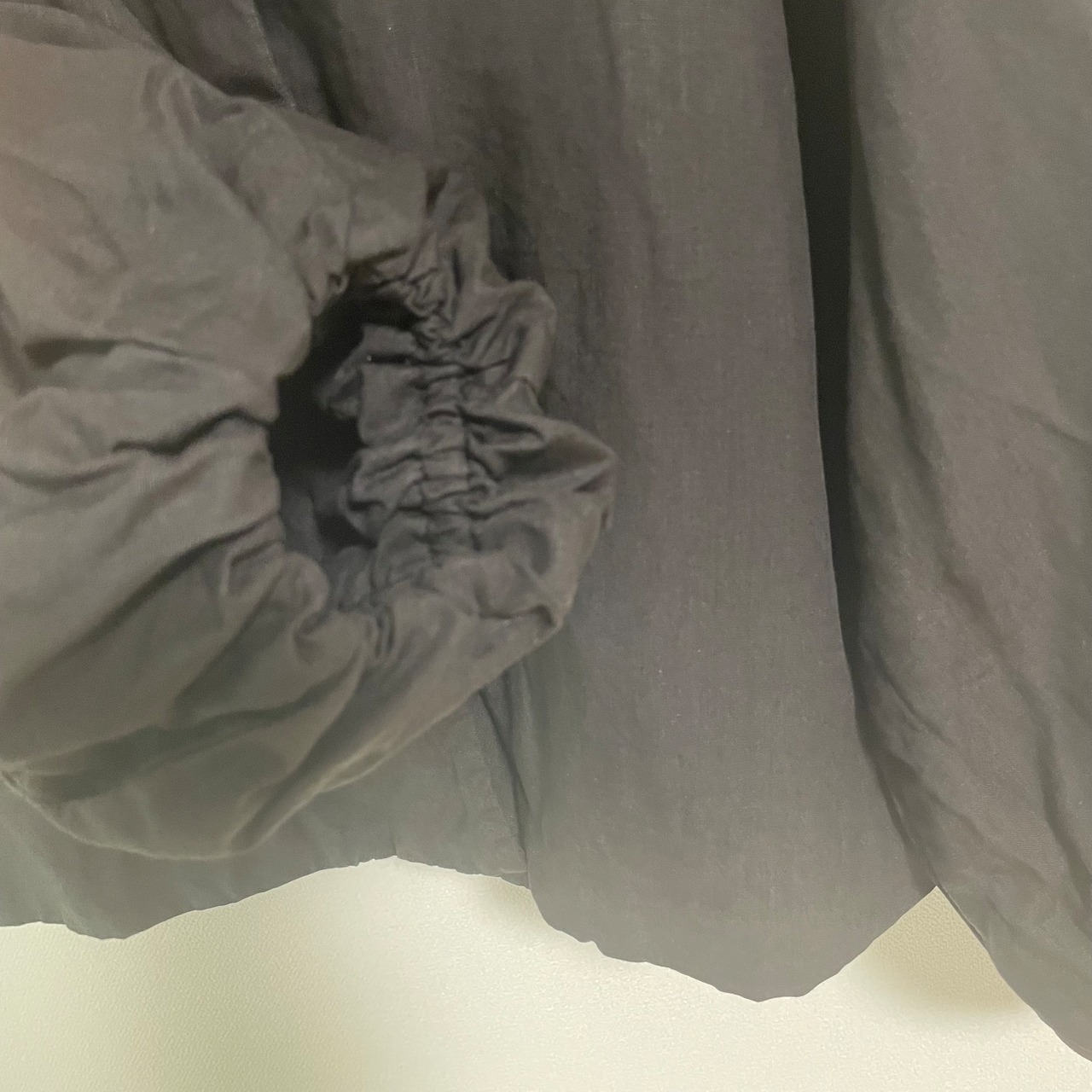 軽くしっかりとしたリネン素材で、首元のさりげないフリルがかわいいデザインです。
