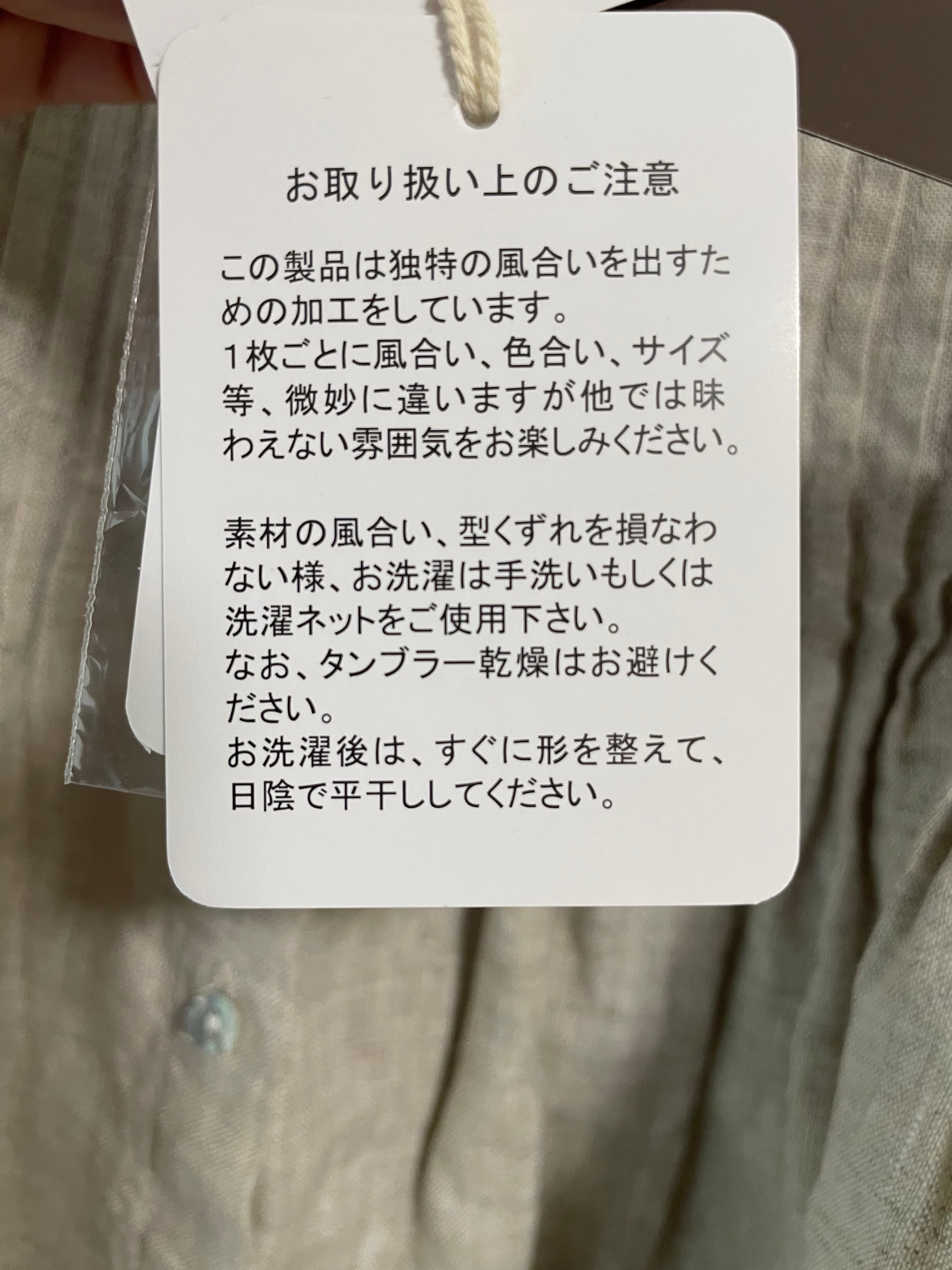 素材の風合い、型くずれを損なわない様、お洗濯は手洗いもしくは洗濯ネットをご使用下さい。
