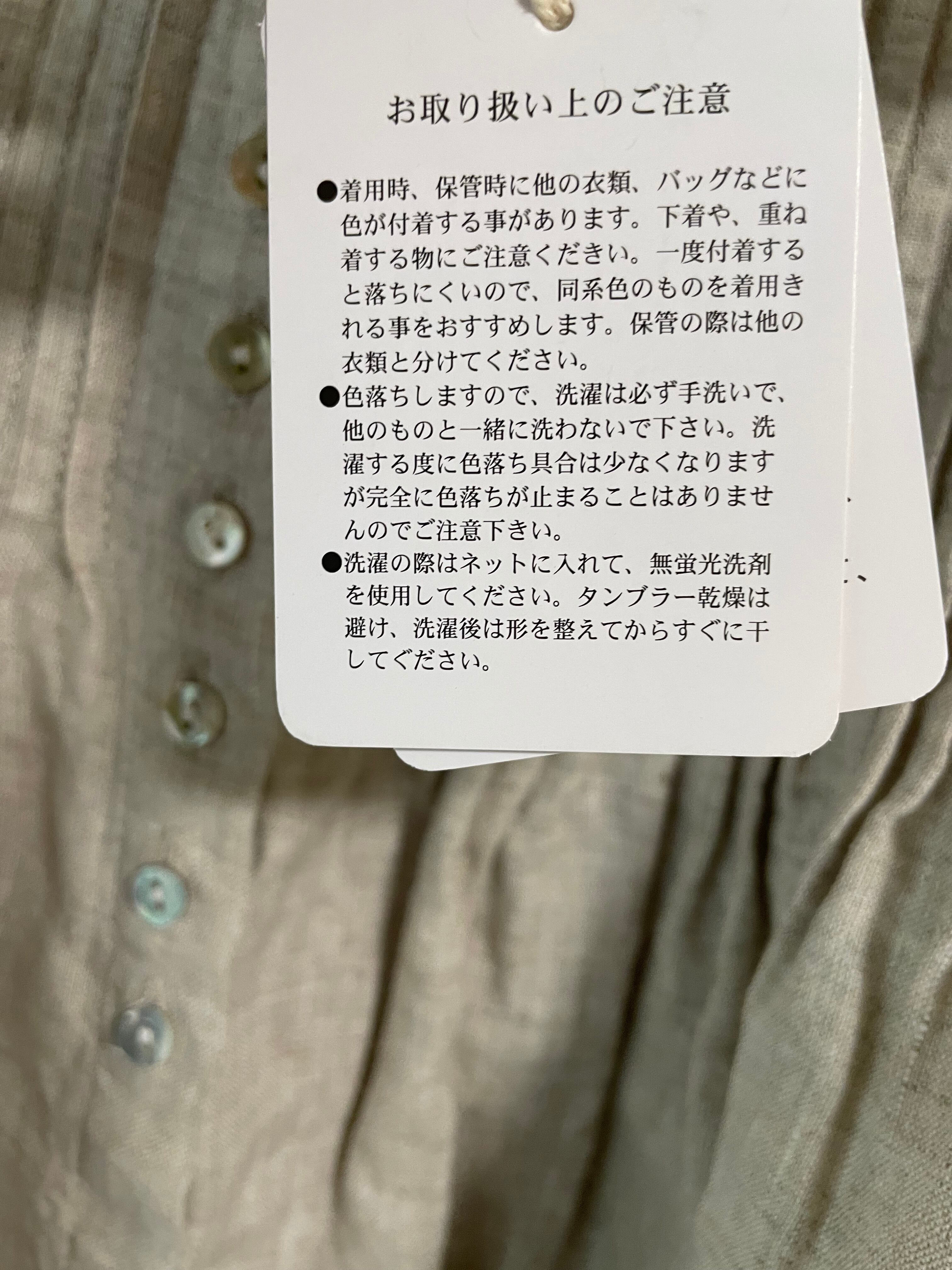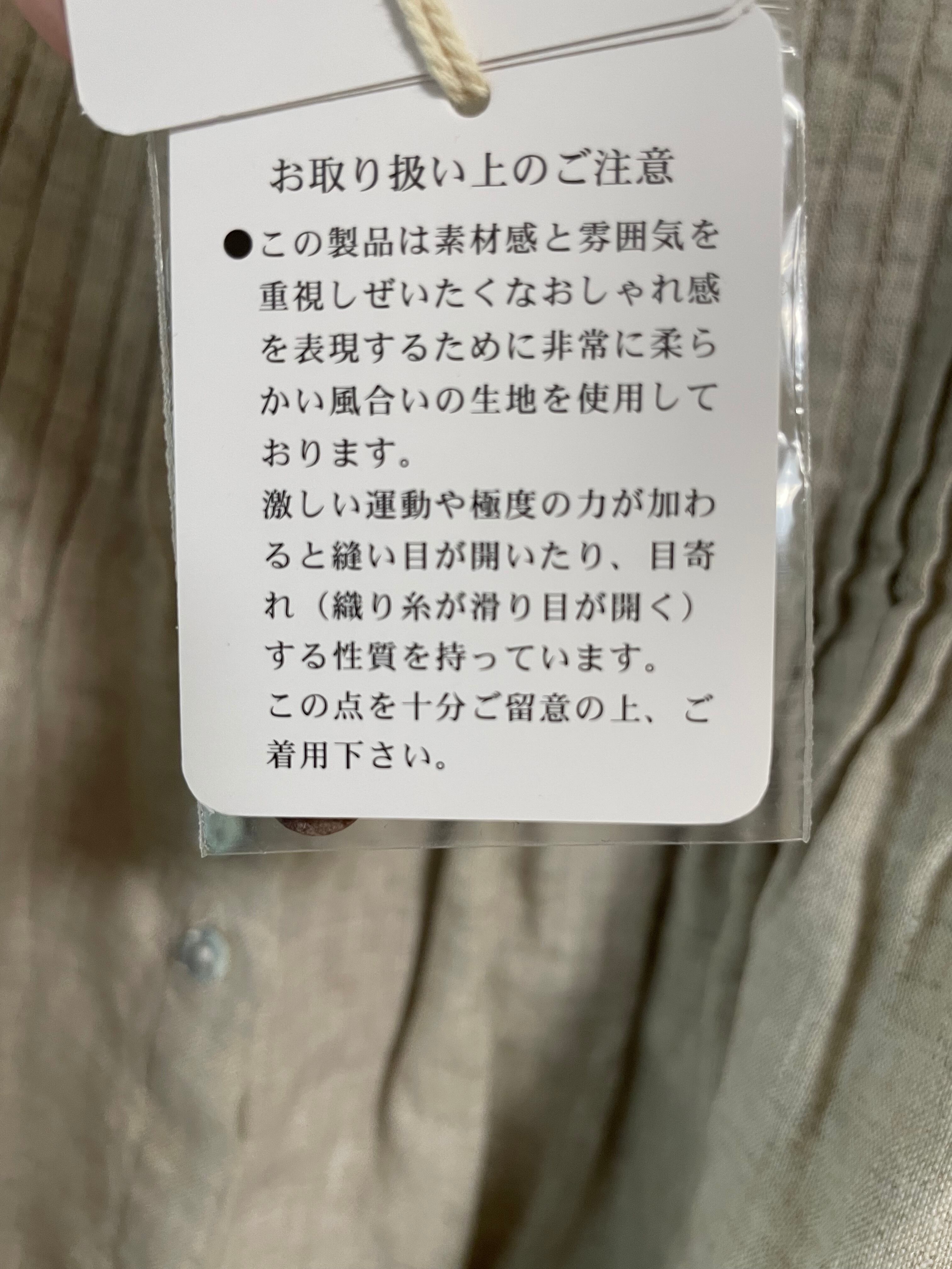 ⚫︎着用時、保管時に他の衣類、バッグなどに色が付着する事があります。下着や、重ね着する物にご注意くだきい。一度付着すると落ちにくいので、同系色のものを着用きれる事をおすすめします。保管の際は他の衣類と分けてください。