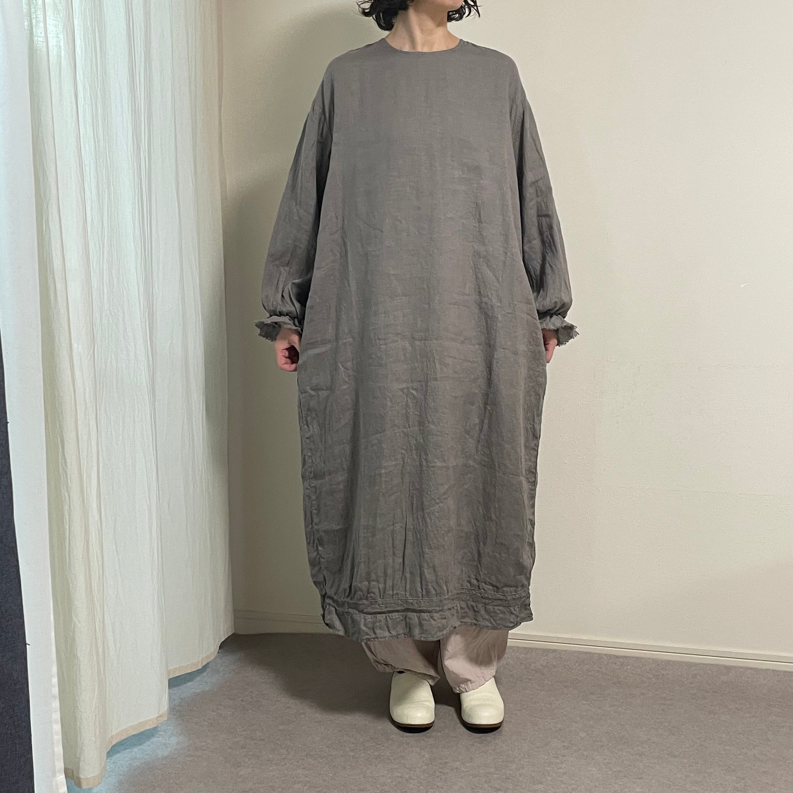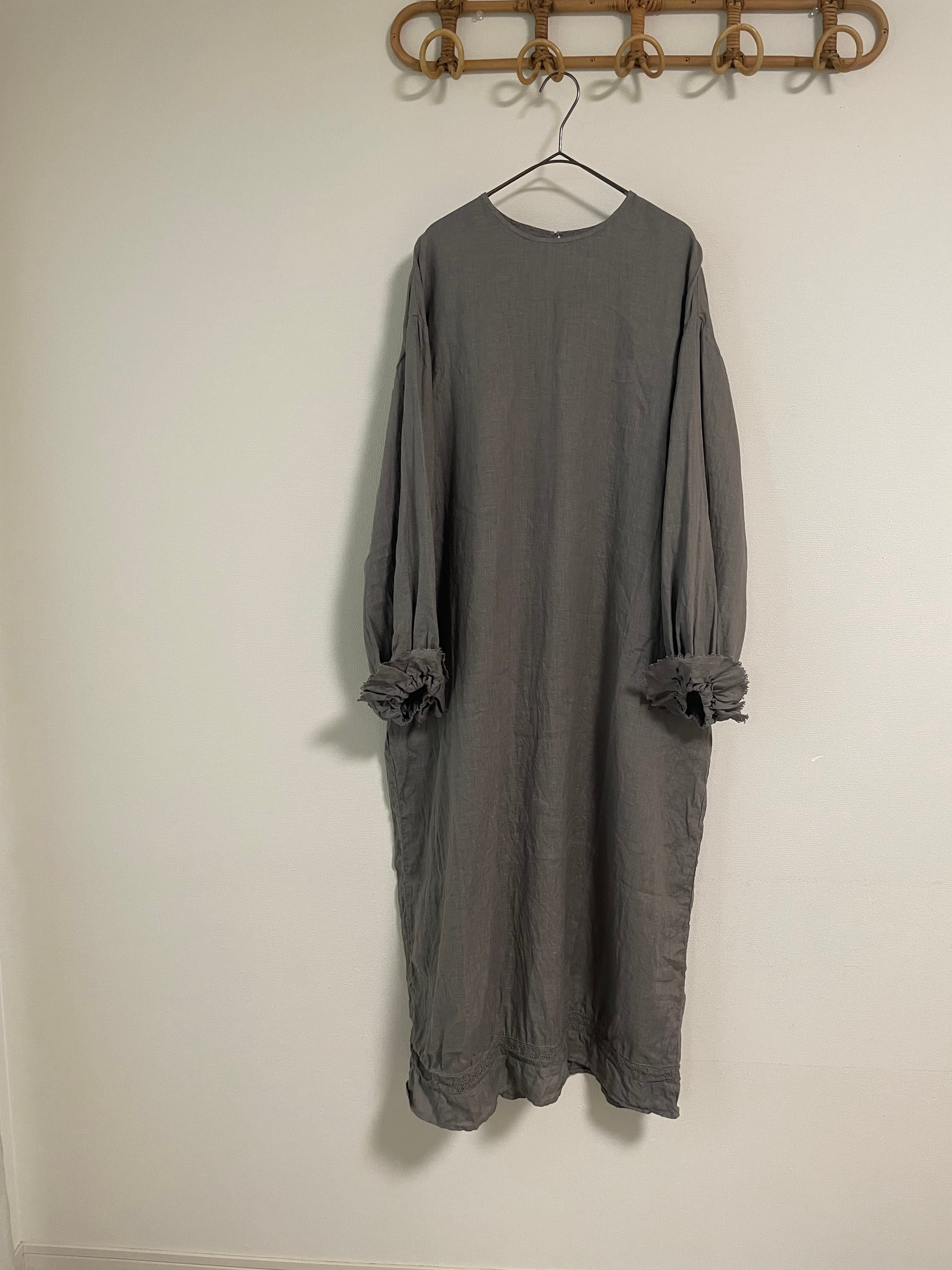 印象的な袖口フリル/オリジナルのアンティークレースで切り替えた裾のディテールもさりげなく...