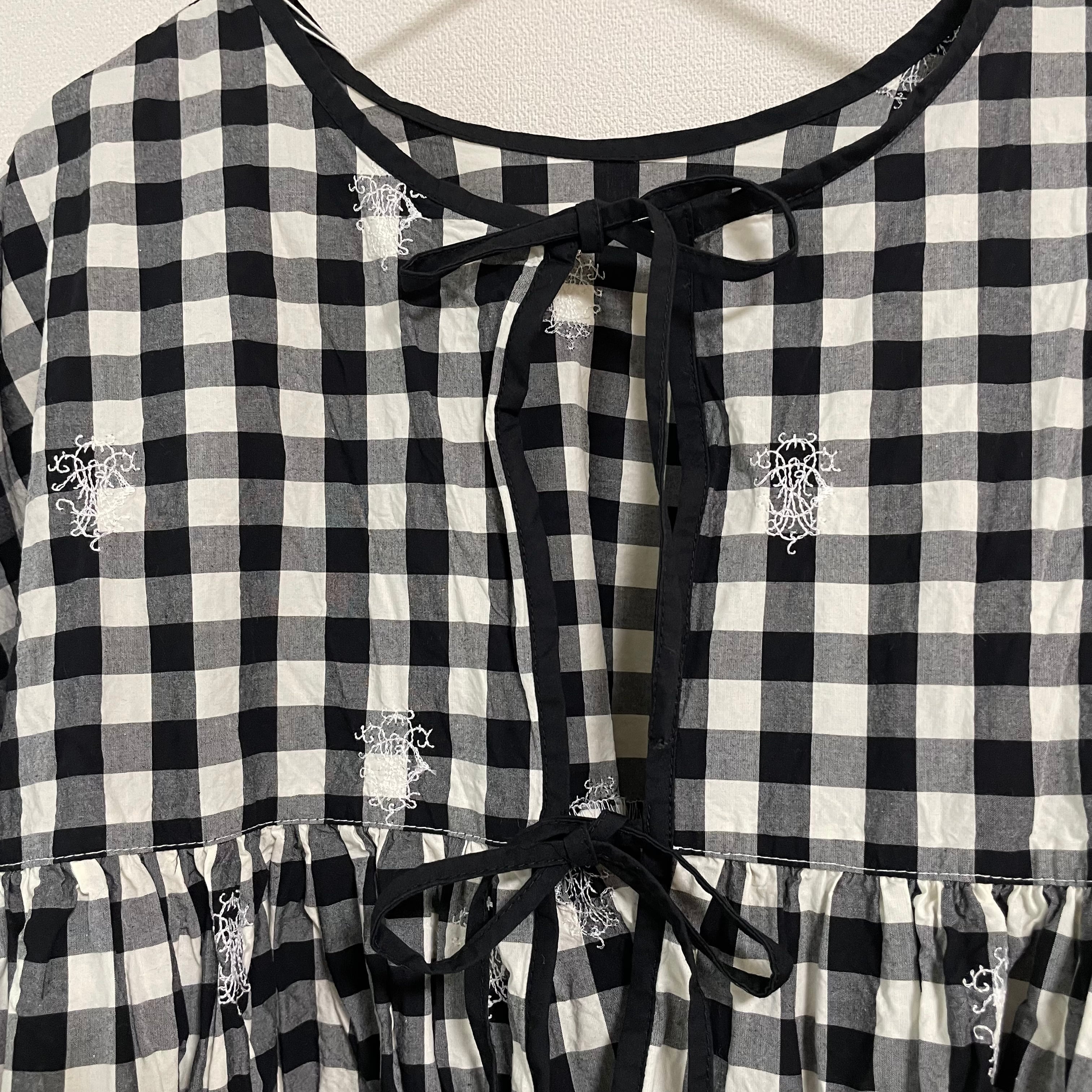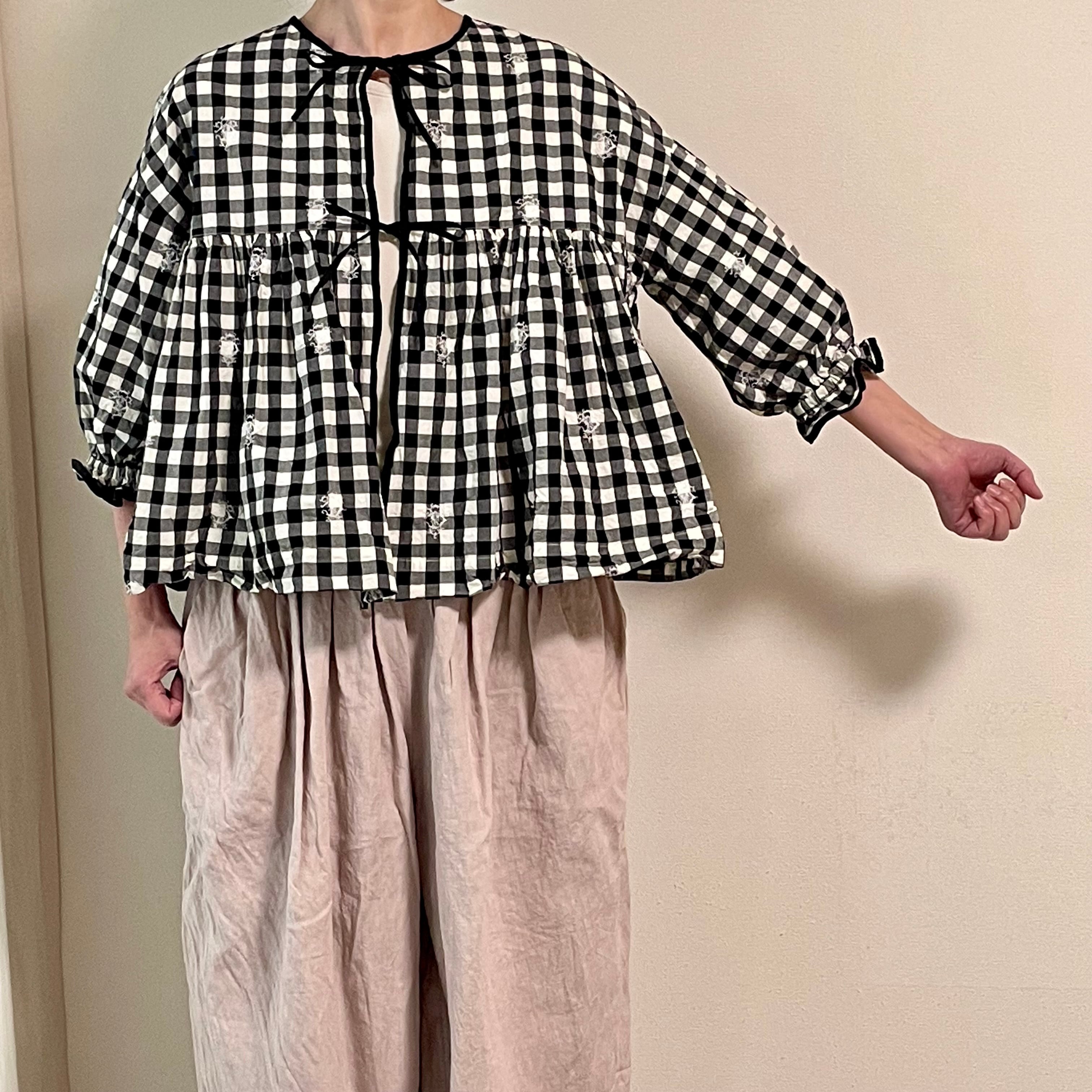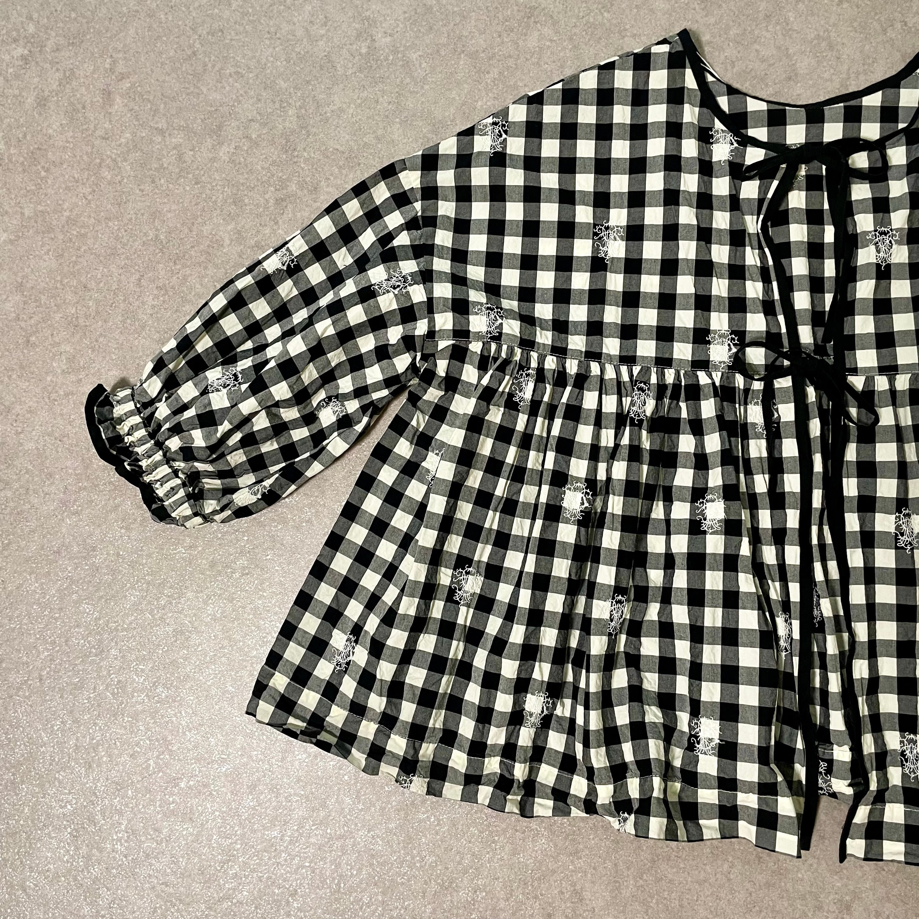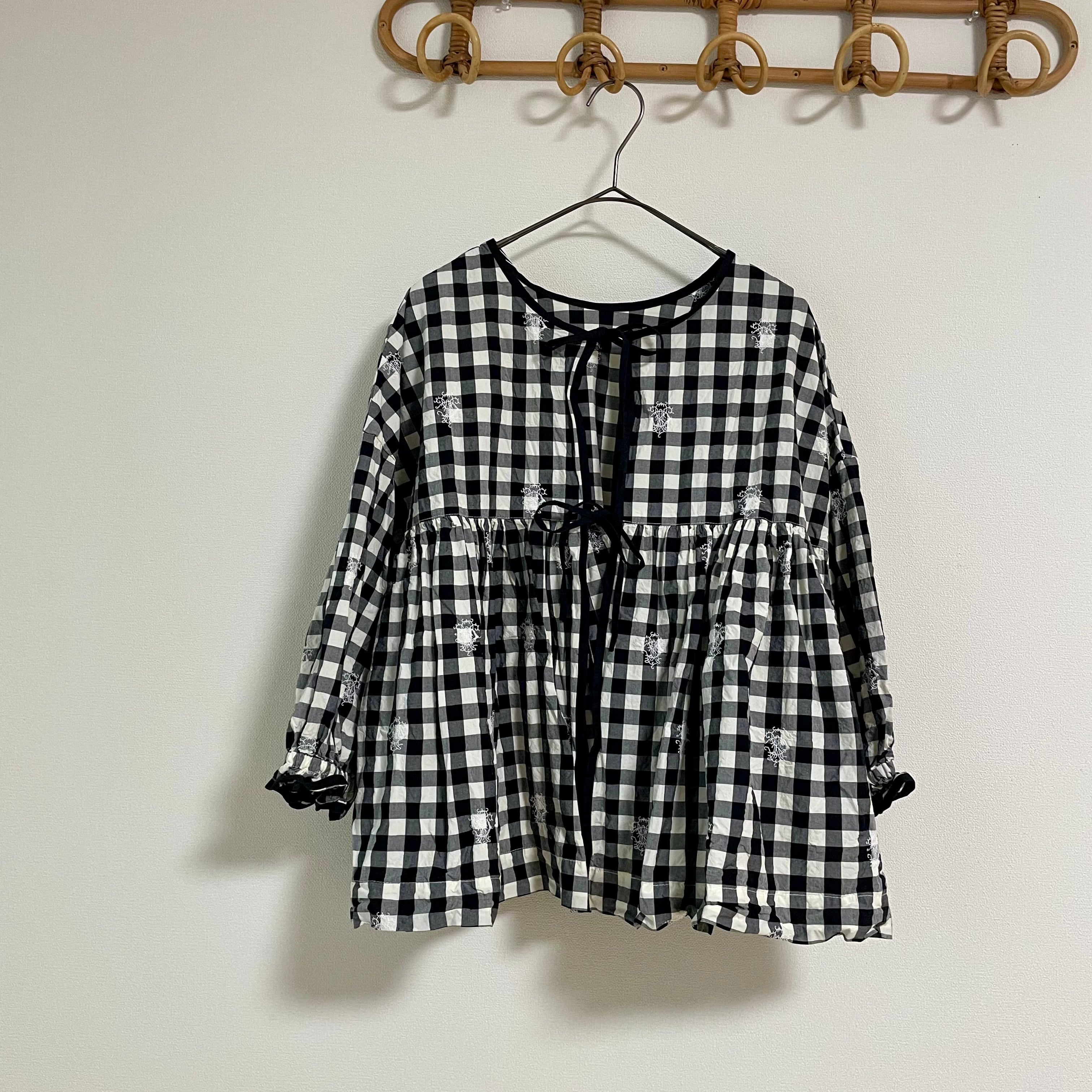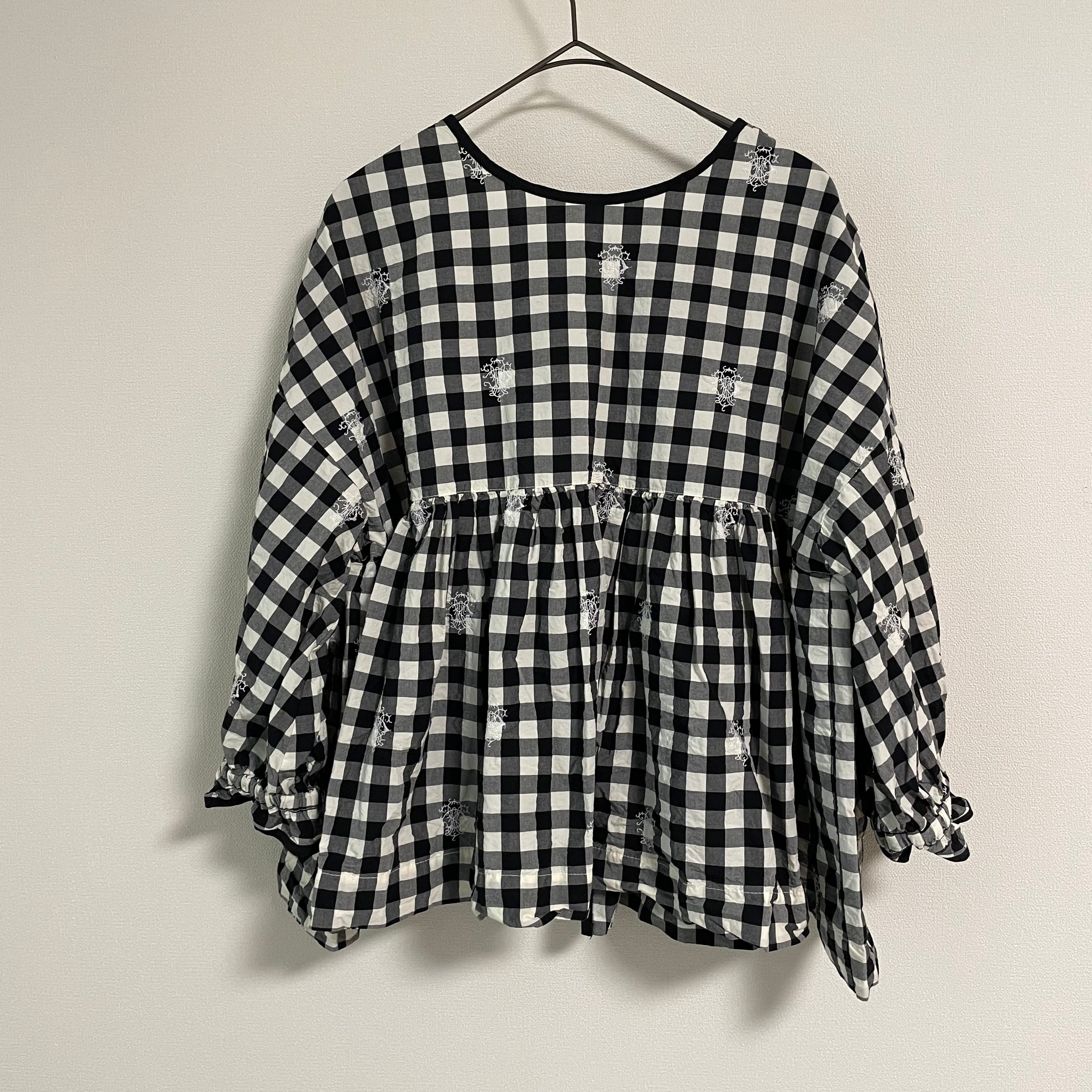 Gauze# // ORIGINAL EMBROIDERY LACE GINGHAM GATHER BLOUSE / エンブロイダリーギンガムブラウス /G1171