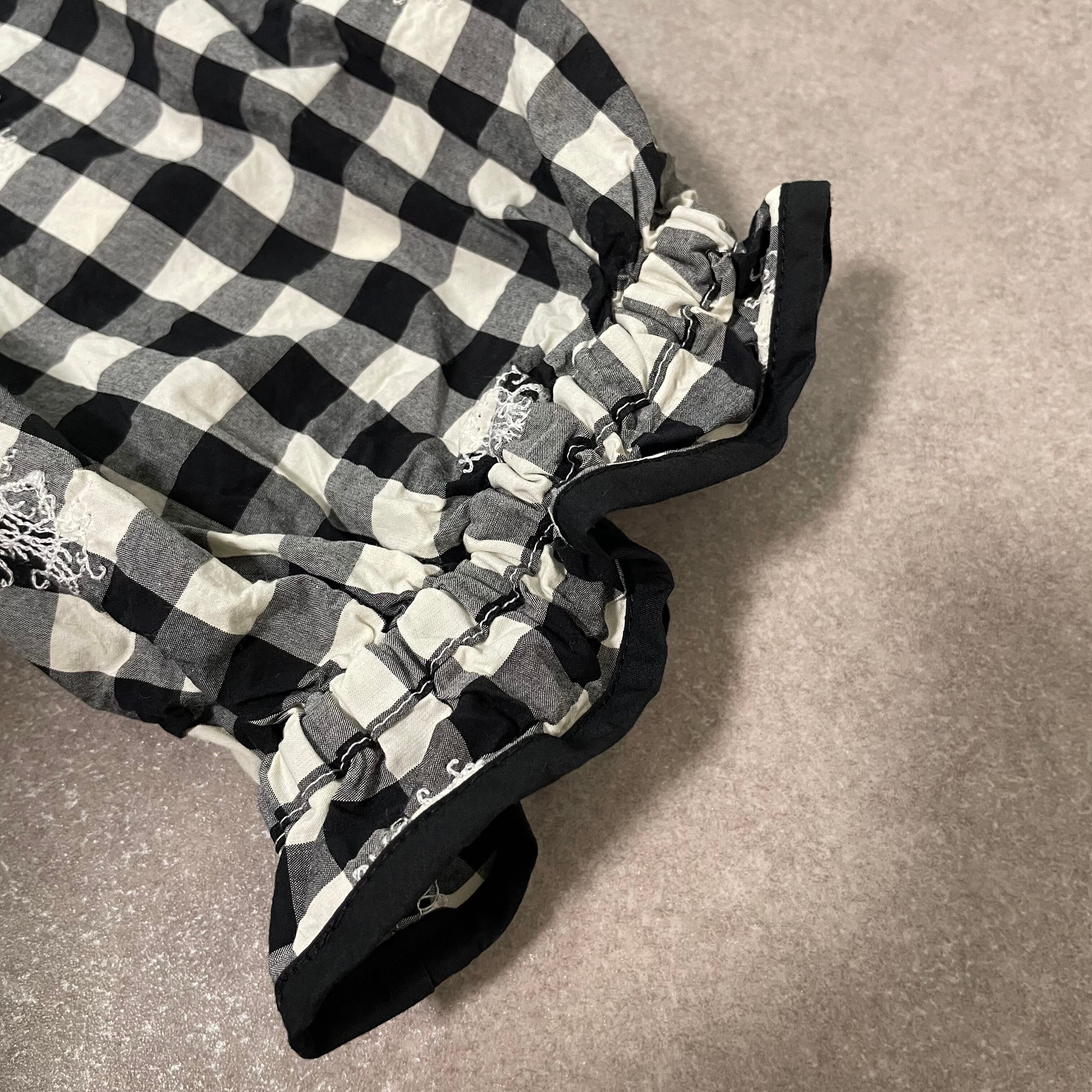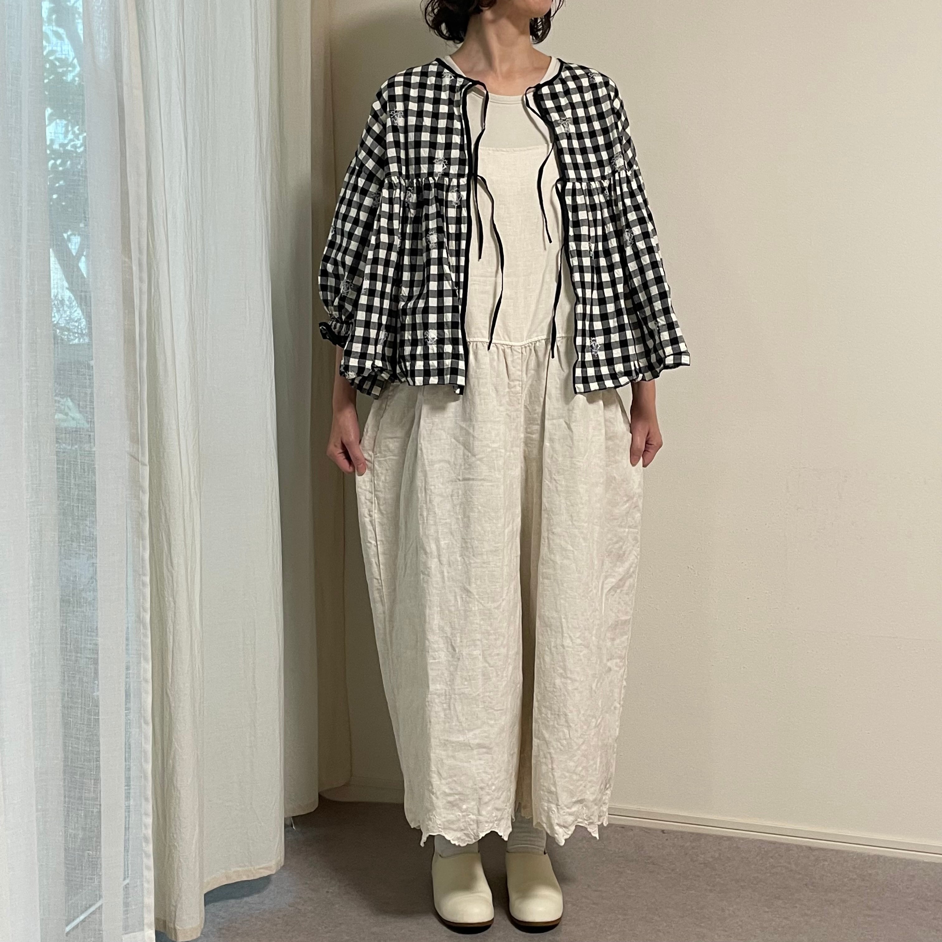 エンブロイダリーレースに魅了され、定番のギンガムファブリックへ落とし込んだことで生まれた、Gauze#らしいアイテム。