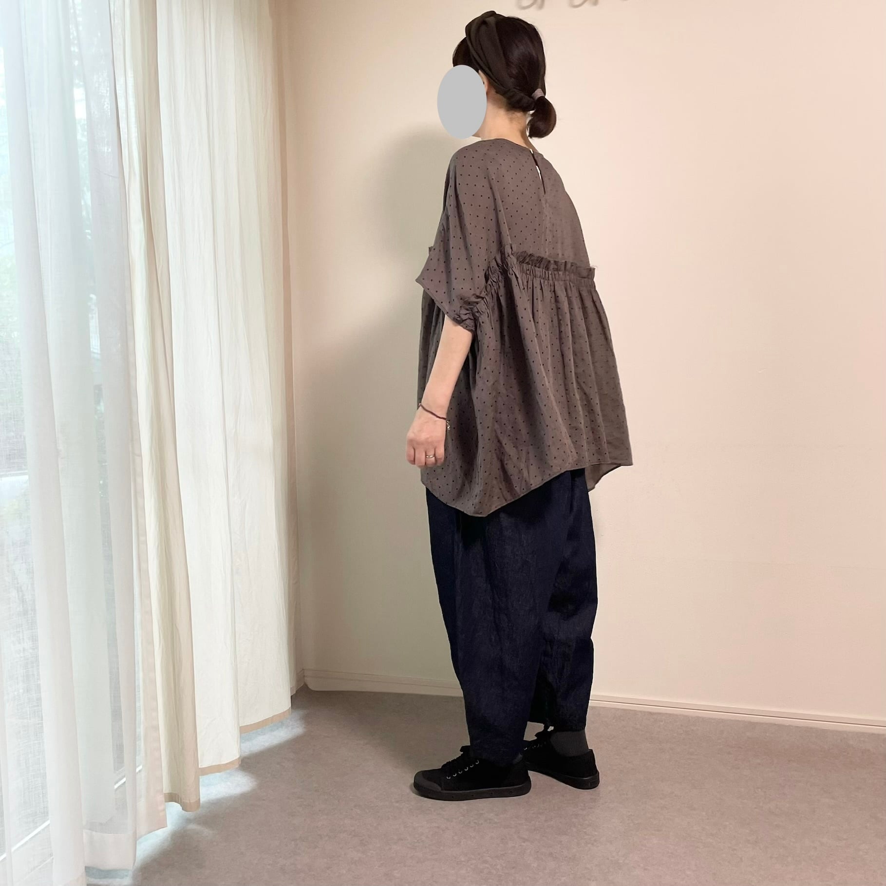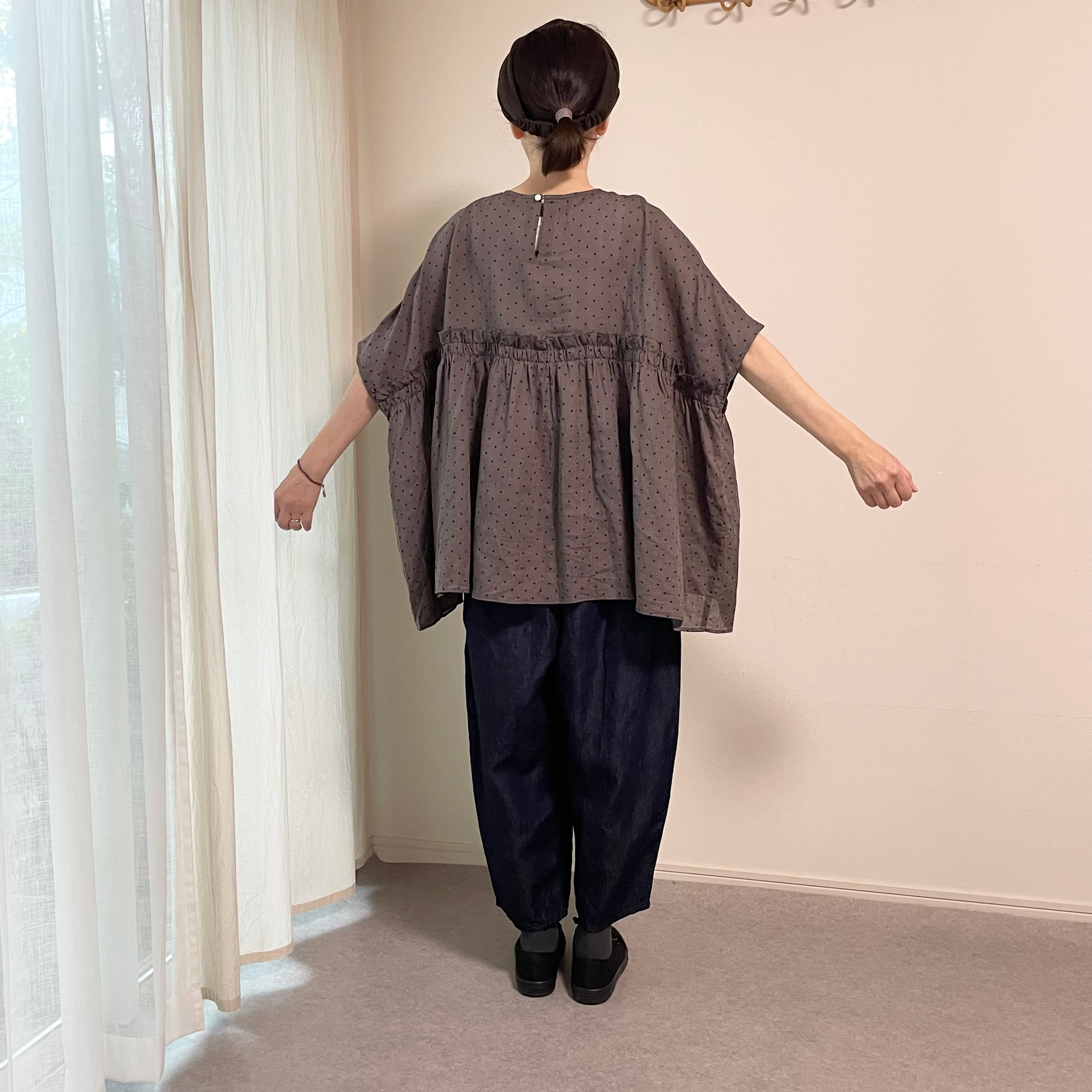 Gauze#// ORIGINAL SMALL DOTS WIDE GATHER BLOUSE /スモールドットワイドブラウス