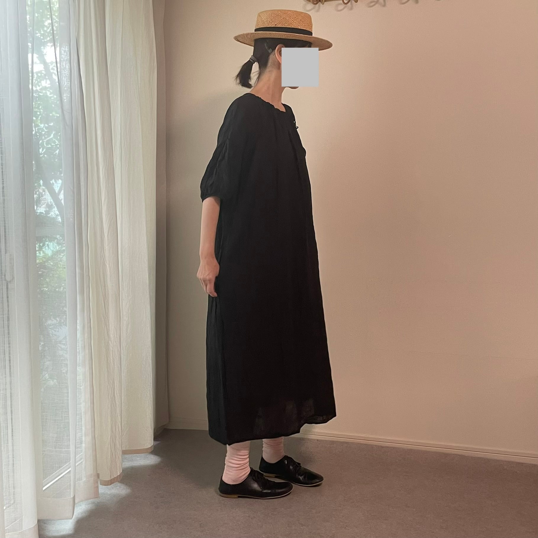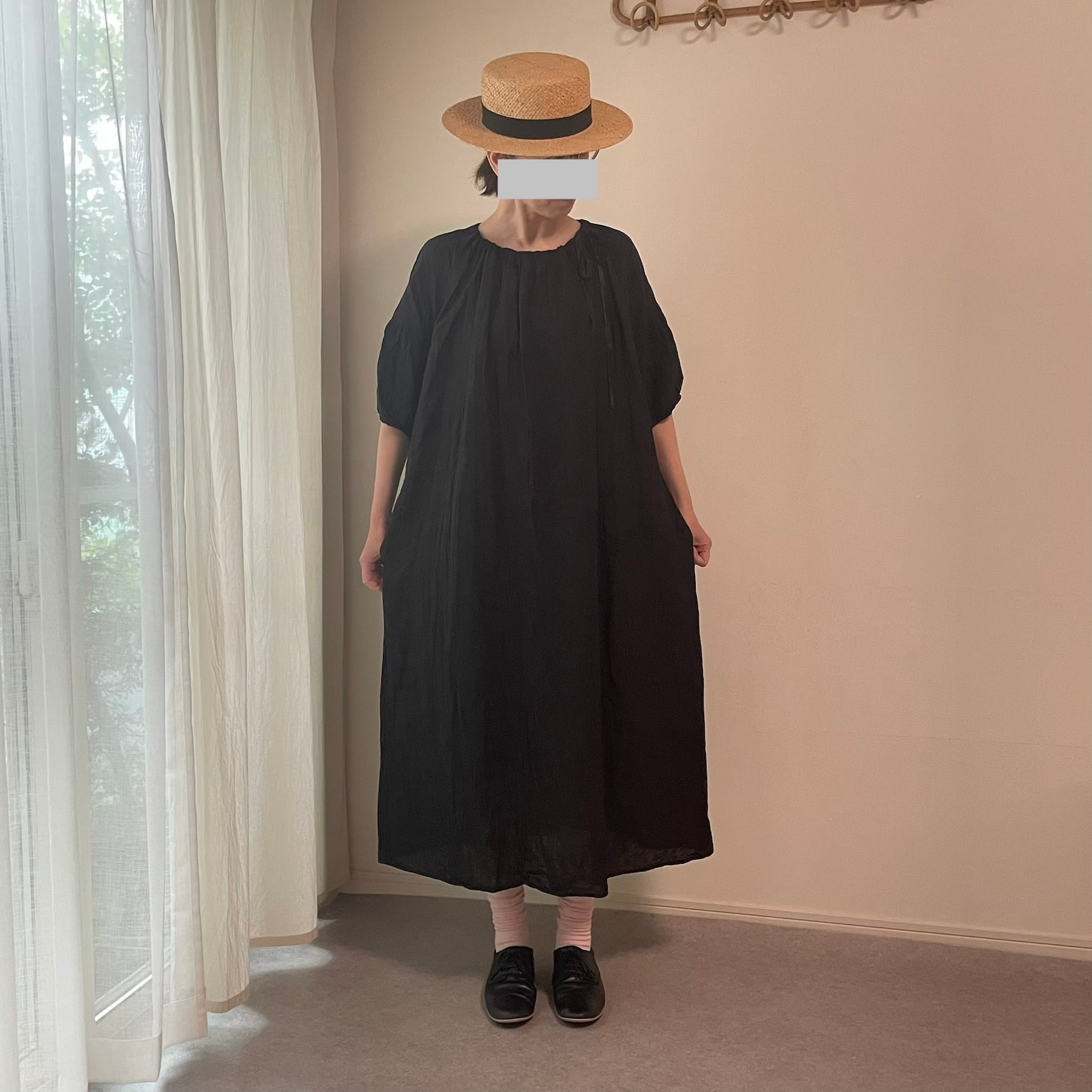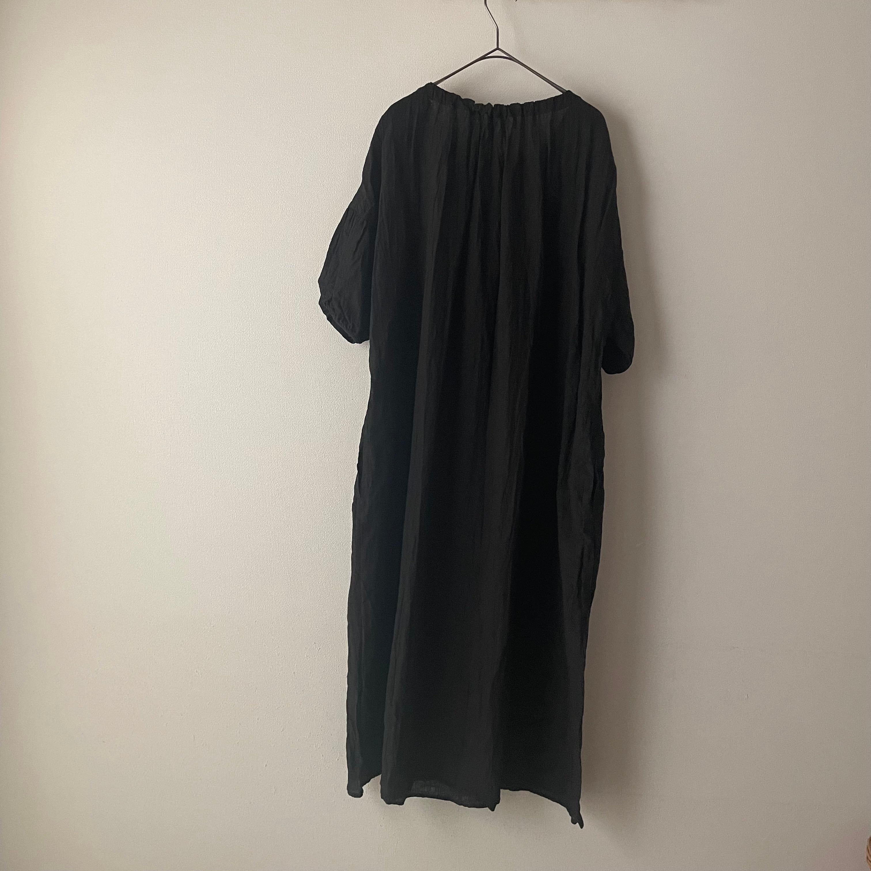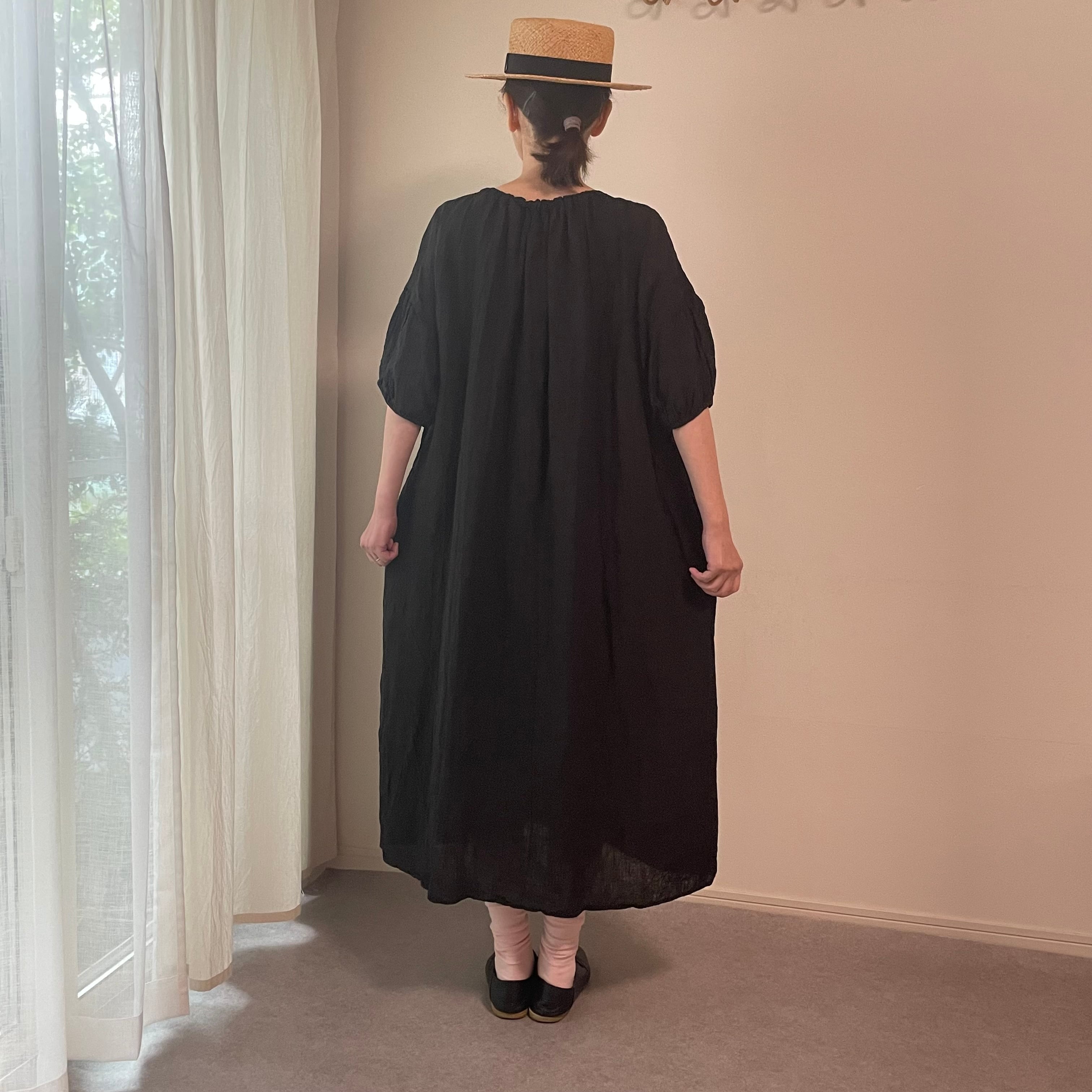 しわ加工を施したアンティークのようなリネンは、シンプルなワンピースと好相性