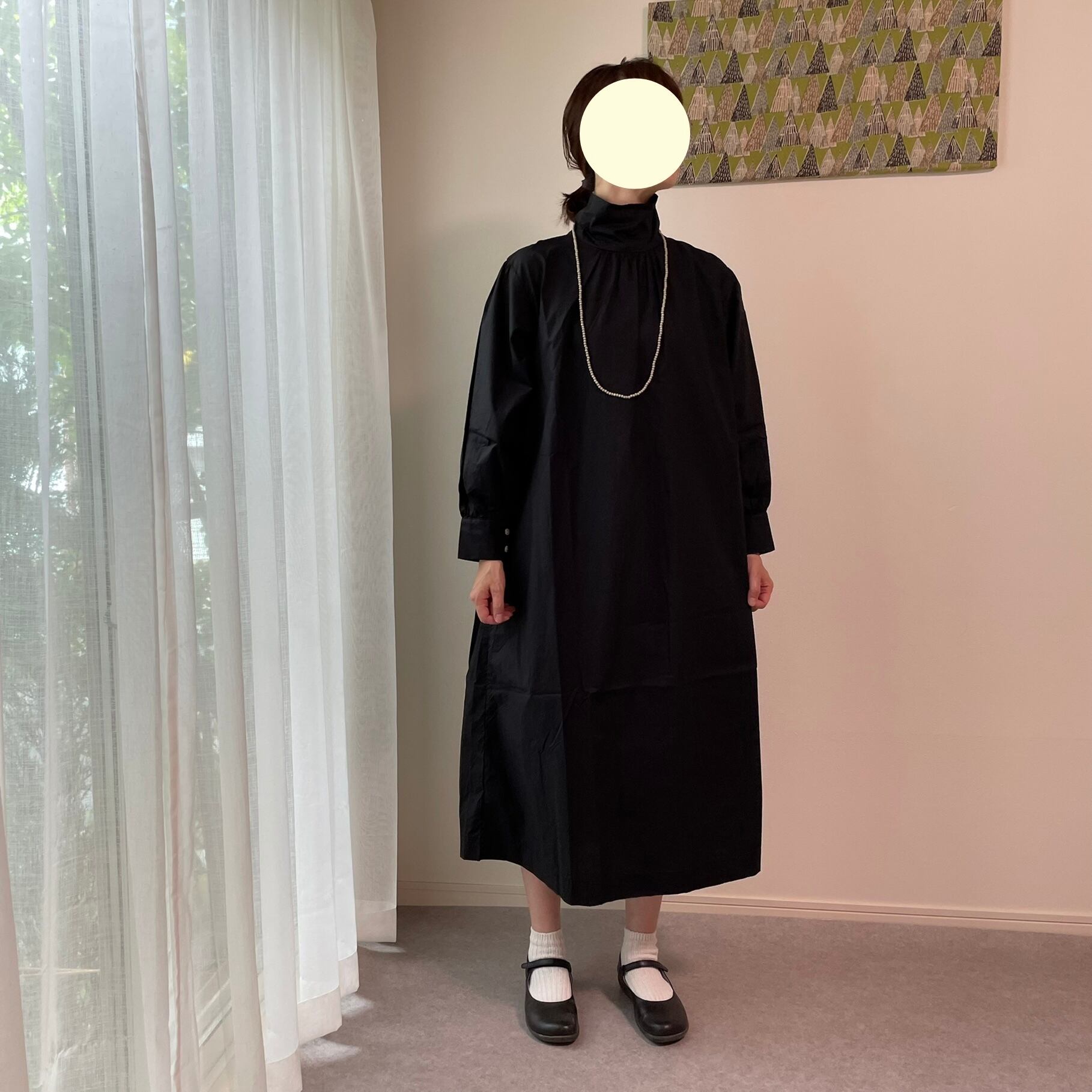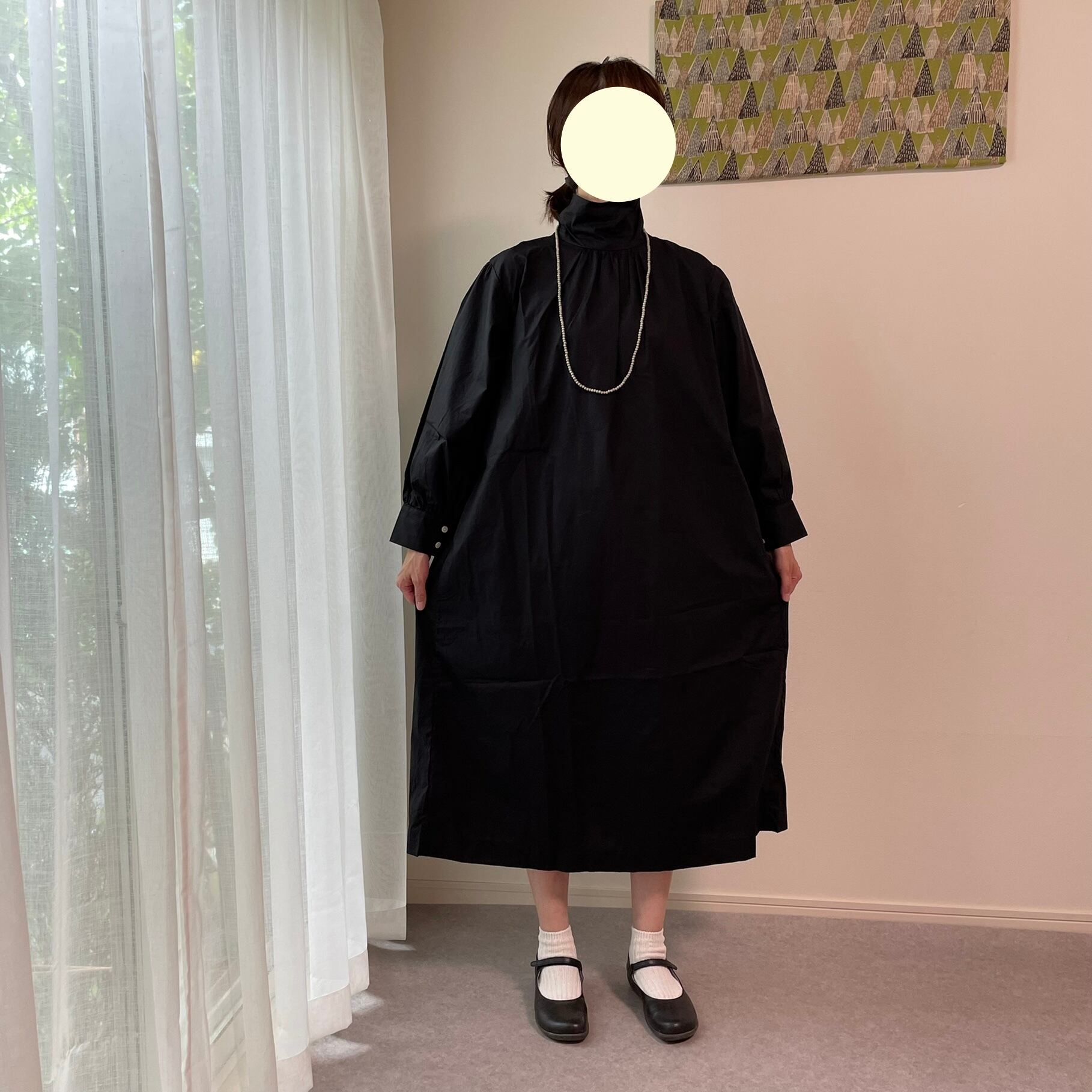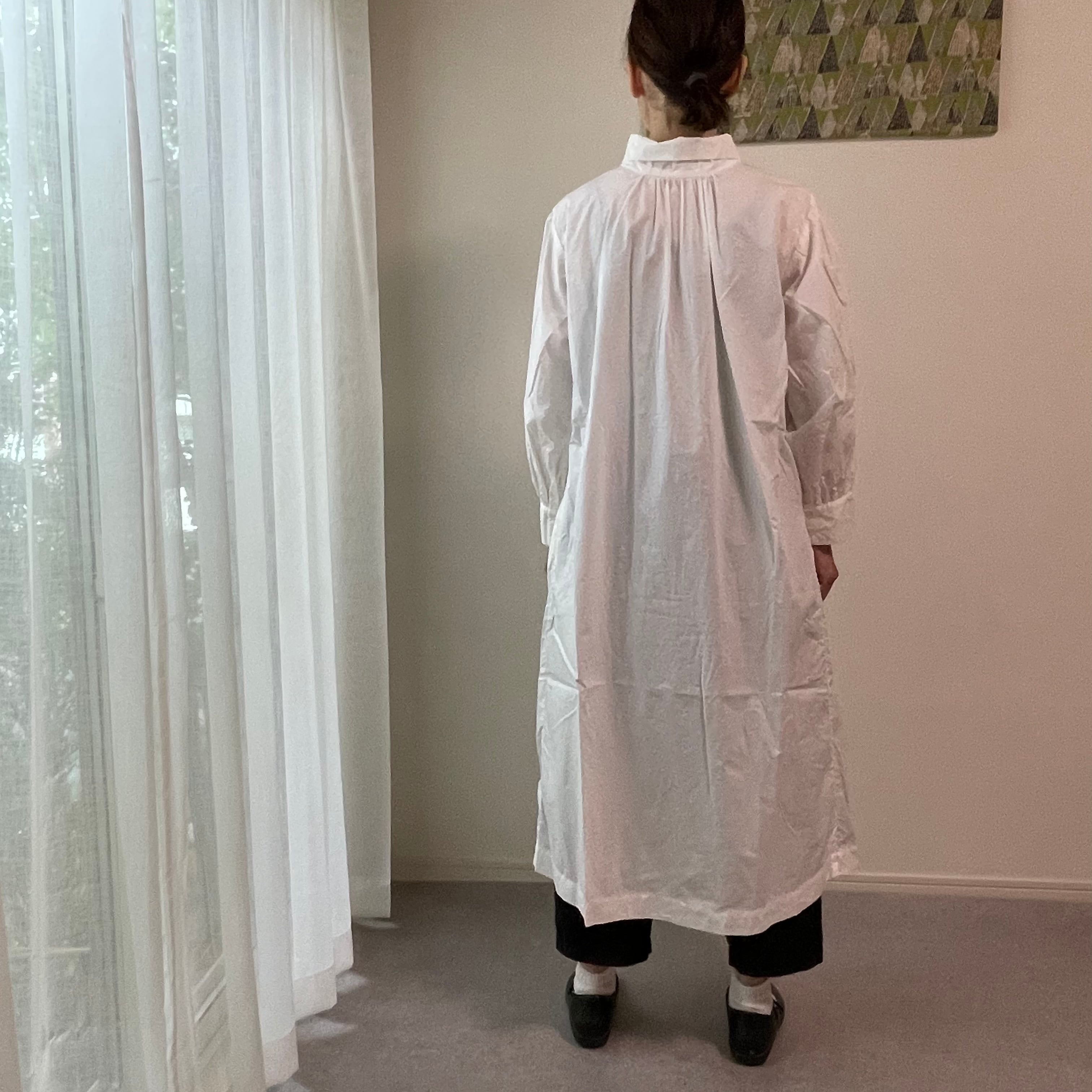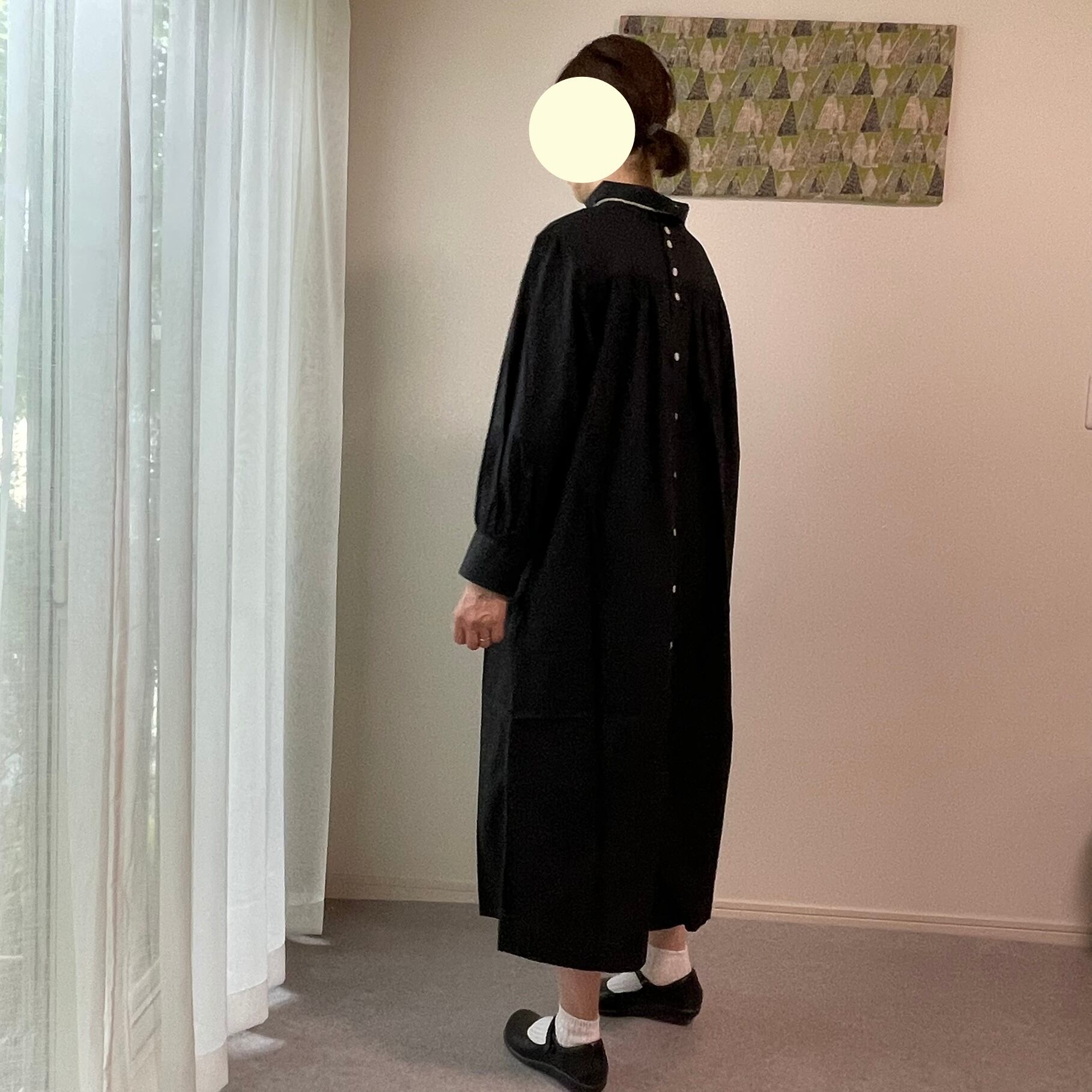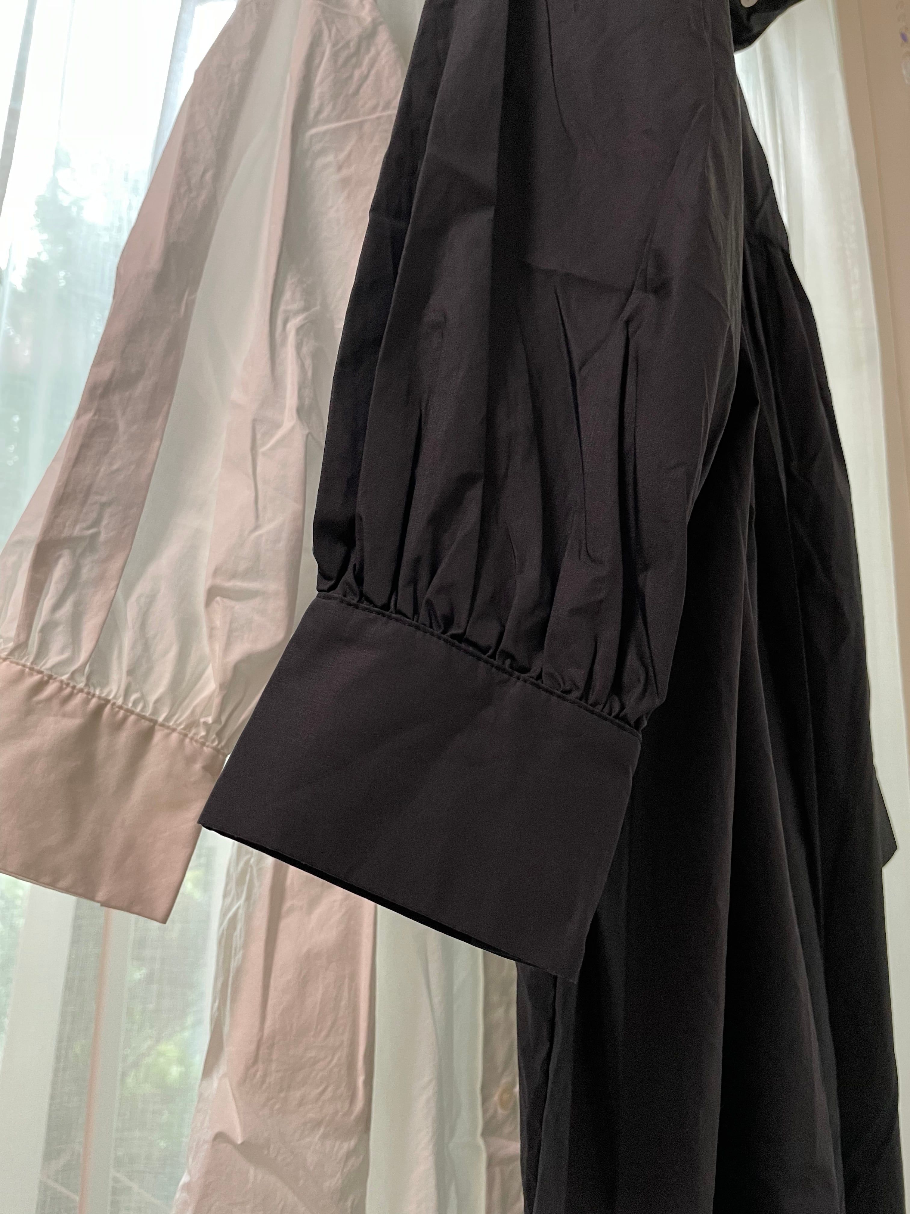 襟を立てたり(スタンドカラー)、襟を曲げたり(ロールカラー)、前後ろ着用の2way仕様で、ワンピースとしてはもちろん、ボタンを外して羽織としても着用できます☺︎