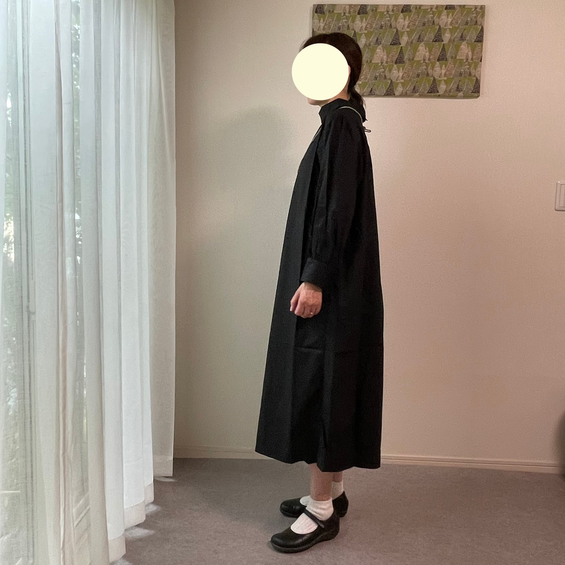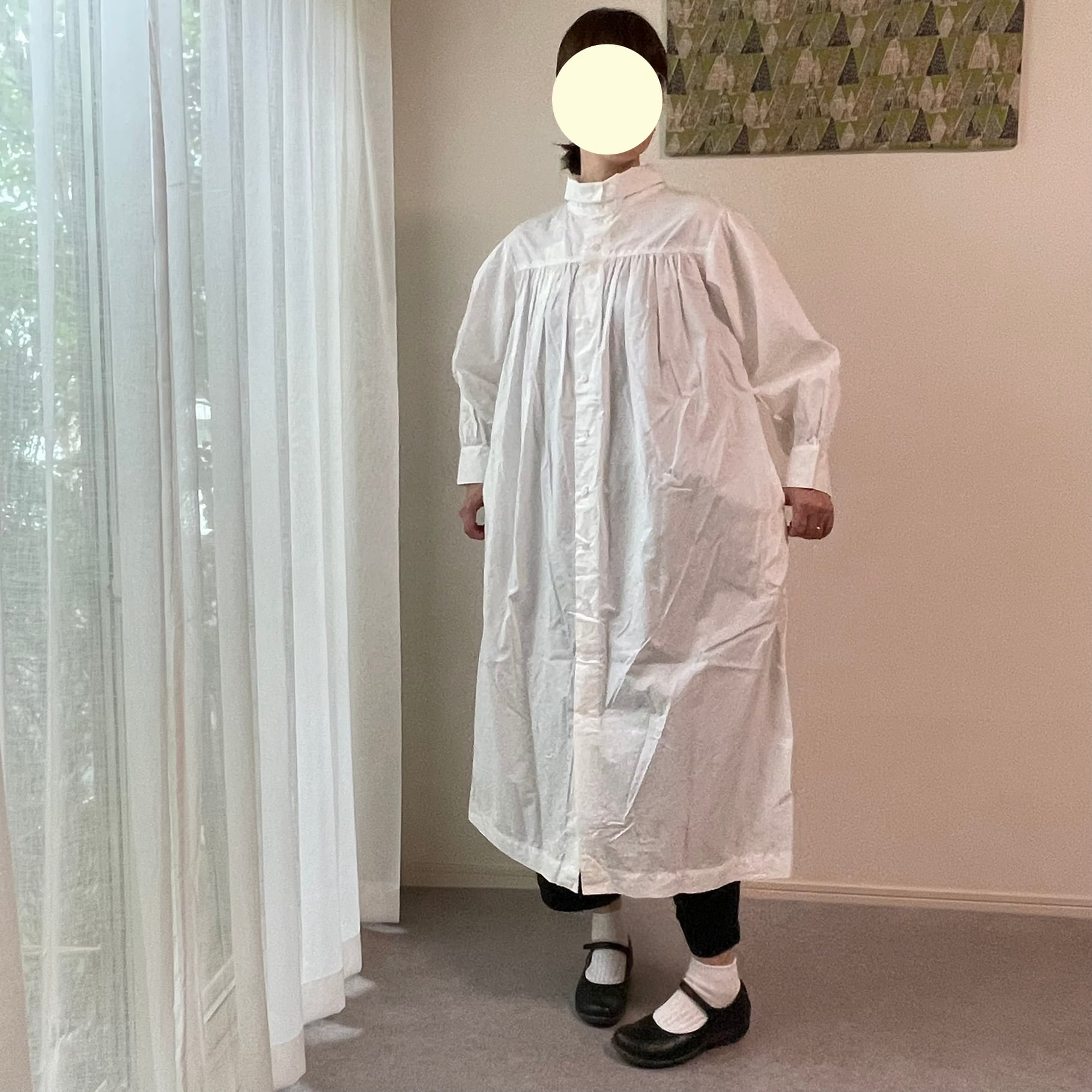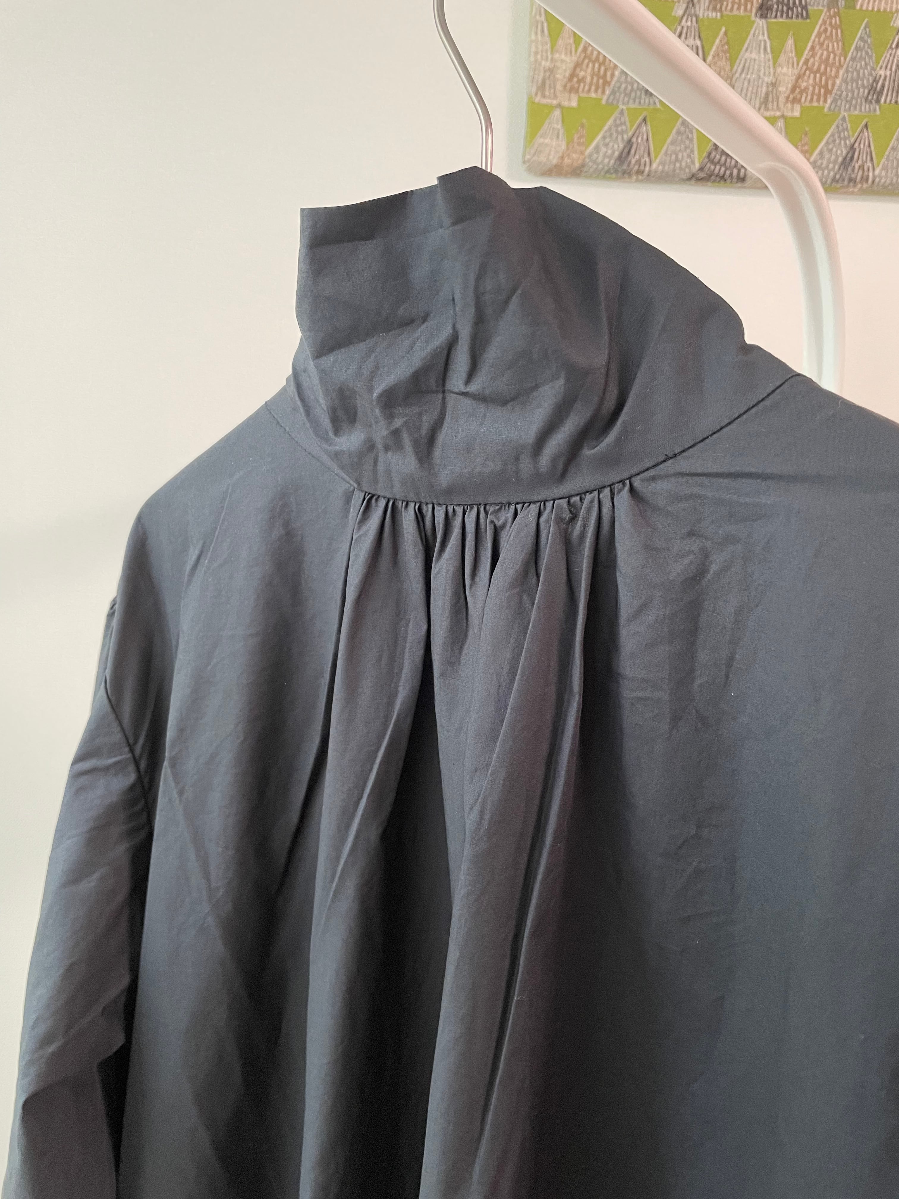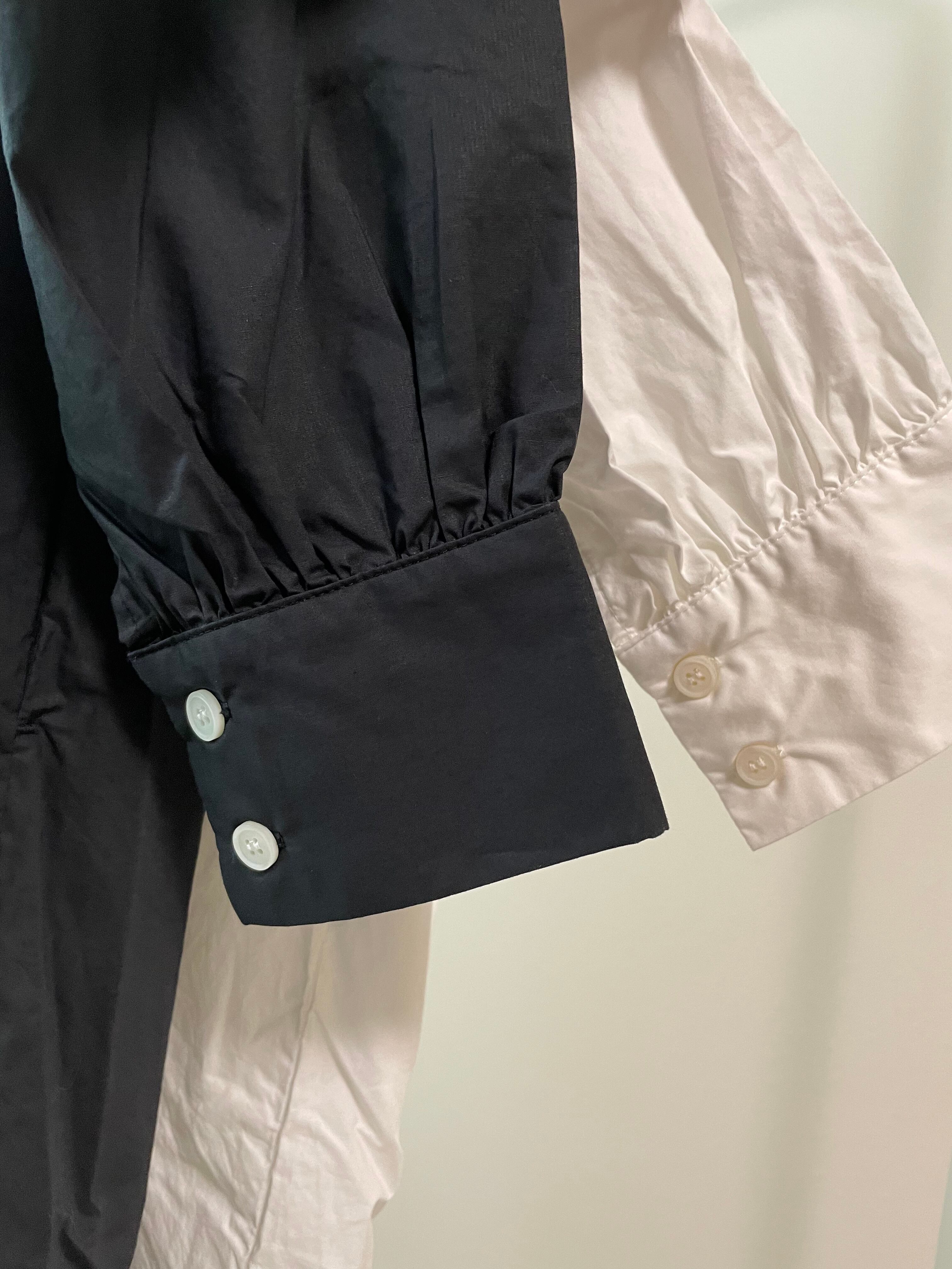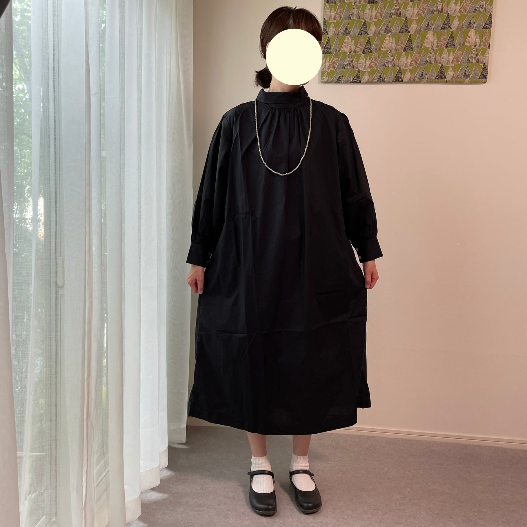 襟を立てたり(スタンドカラー)、襟を曲げたり(ロールカラー)、前後ろ着用の2way仕様で、ワンピースとしてはもちろん、ボタンを外して羽織としても着用できます☺︎