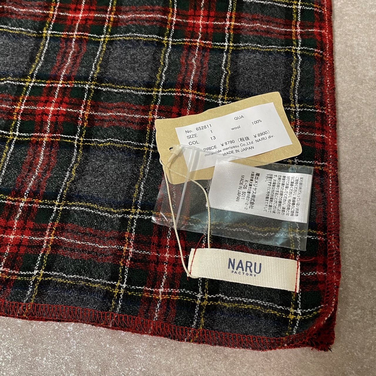 ▶︎送料無料◀︎ NARU ウールガーゼチェック ボリュームストール 652815 125cm×125cm