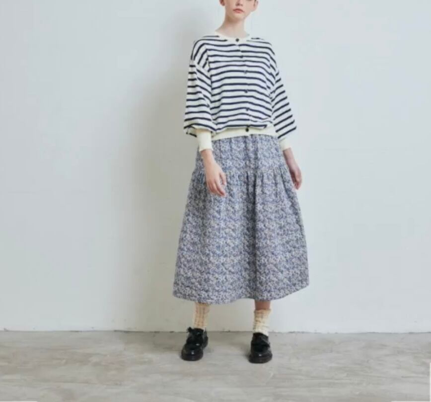 ROBEdePEAU // BALLOON SLEEVE 2WAY BORDER KNIT/ ボーダー カーディガンR219 (gauze♯ コットンニット)